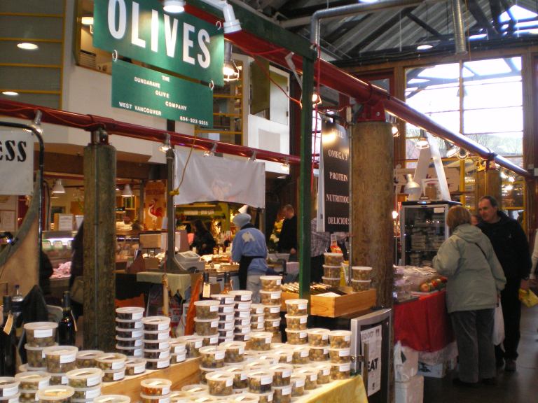 海辺を散策した後、「グランビル・アイランド」に行くことにした。2ドル50セント払うとモーターボートに乗れる。モーターボートに乗ると向こう岸に送ってもらえる。渡った先が「グランビル・アイランド」。端から端まで歩いても500m程度しかない。賑やかなお店、芸術家風の建物、洒落たお店(靴工房、傘専門店、ガラス工房など)が並んでいる小さいアイランド。ガイドブックによると、「再開発により、ショッピングも食事も楽しめる観光スポットに生まれ変わった」そうだ。夏にはストリートミュージシャンなんかも集まってきてひときわ賑やかになるらしい。橋が架かっているので、帰りはモーターボートではなくバスでダウンタウンまで戻った。