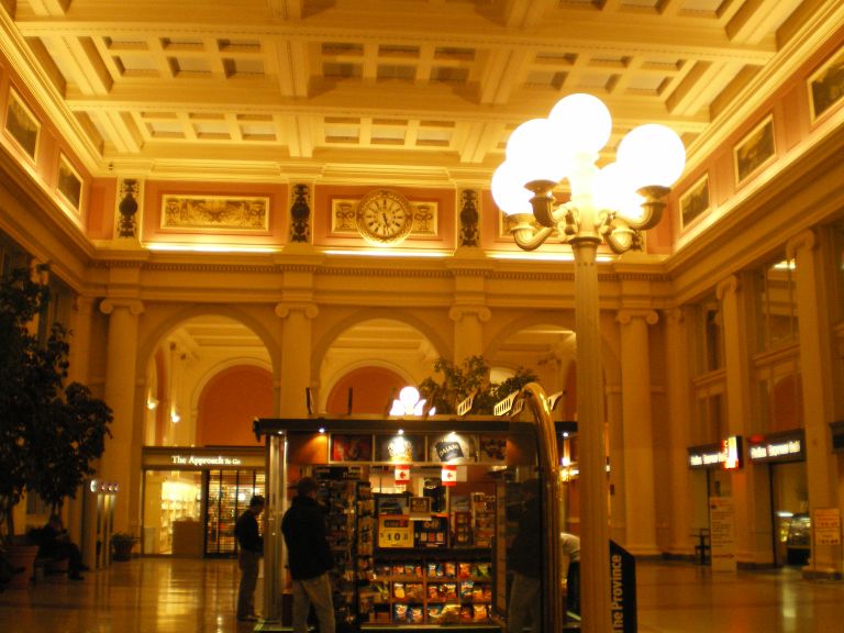 ウォーターフロントステーション。スカイトレインの発着、シーバスの発着など、ターミナル駅となっている。外観、内装ともに私好み。ダウンタウンにあるスカイトレインの駅はどれも徒歩圏内なので(ダウンタウン自体がとても小さい)、よくここまで歩いてきてガラガラに空いているスカトレに乗ってみたりする。ちなみにこの中に入っているスターバックスは、バンクーバー最古のスタバなのだそうだ。