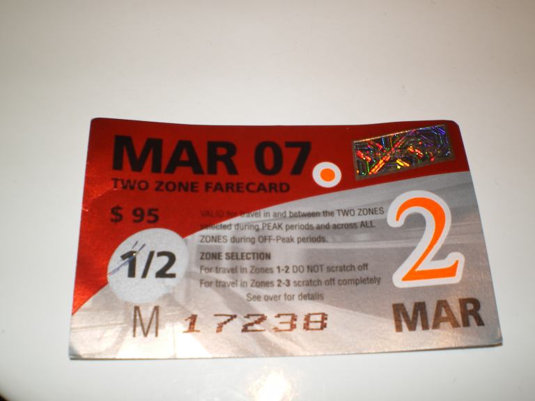 ←今月分の1ヶ月定期。MAR 07 は2007年3月という意味。日本と違って、買った日から1ヶ月というわけにはいかない。月の後半で買うと損になる。