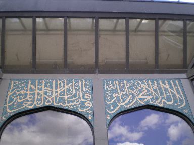 モスクの入り口上部。アラビア語が書いてある。韓国人の友人のクラスメートにサウジアラビアから来たムスリムの男の子がいるので、ここに何て書いてあるか聞いてもらった。これはクルアーンの一節で、「アッラーは偉大なり」「ムハンマドは神の使徒なり」といったことが書いてあるそうだ。うーん、予想通り!