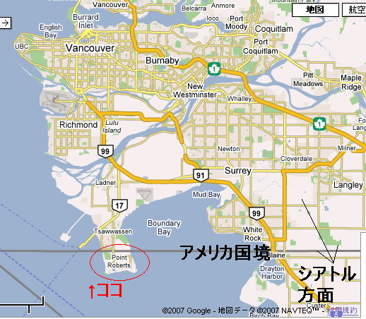 これがポイント・ロバーツの位置(写真をクリックすると拡大)。