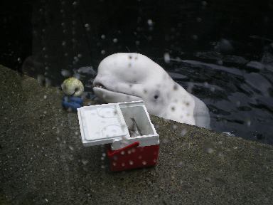 ←シロイルカのシロちゃん(勝手に命名)。白いイルカ。別名ベルーガ。賢い。かわいい。