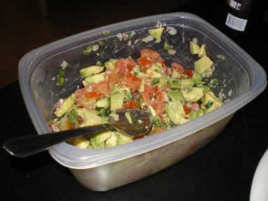 ↓下はM君が作ったタコス。皮の部分は出来合いだけど、アボガドやその他の野菜を切って混ぜて・・・と、具は自分で作ってくれた。もちろんすごくおいしかったです☆