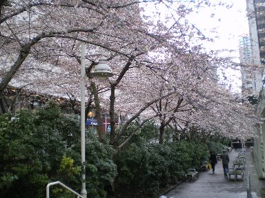 中でも、スカイトレインのターミナル駅ウォーターフロントステーションから一つ手前にある「バラードステーション」は、通勤客や学生にも人気のお手軽花見スポットだ。