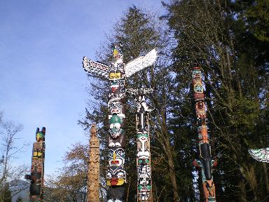 スタンレーパークには、こんなトーテムポールもあります。これはよくポストカードなどになっていて有名です。