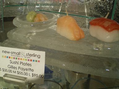 ↓下は、ガラス製プレート。そう、バンクーバーで大人気、おなじみ「お寿司」用である。