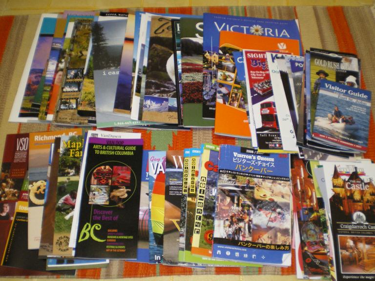 今回は、バンクーバーとバンクーバー周辺の観光地のガイドブックを山ほどもらってきてしまいました。